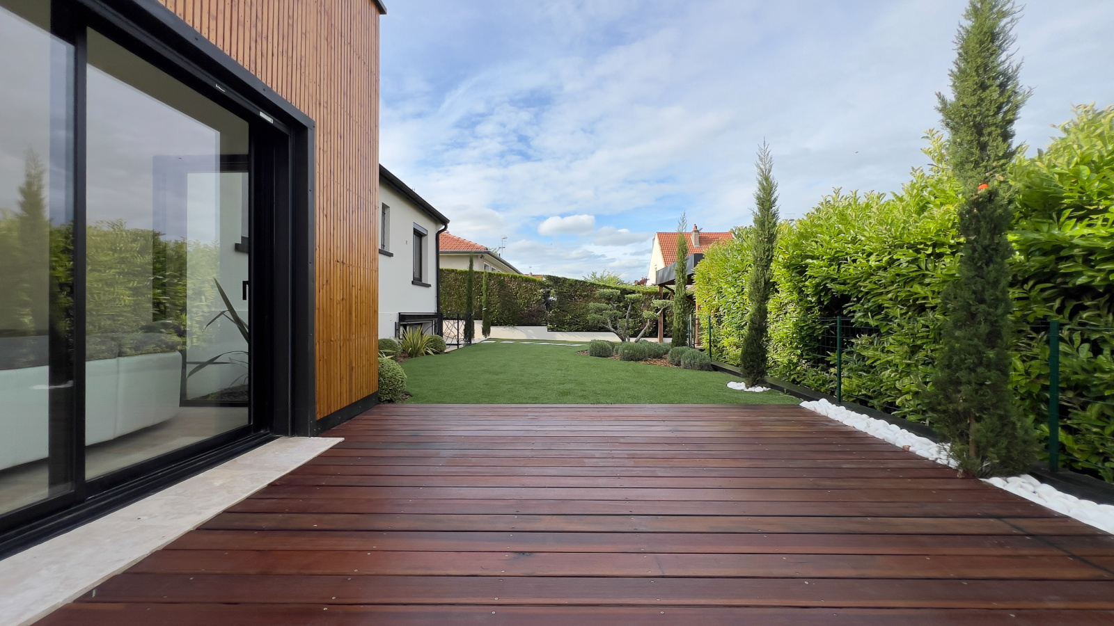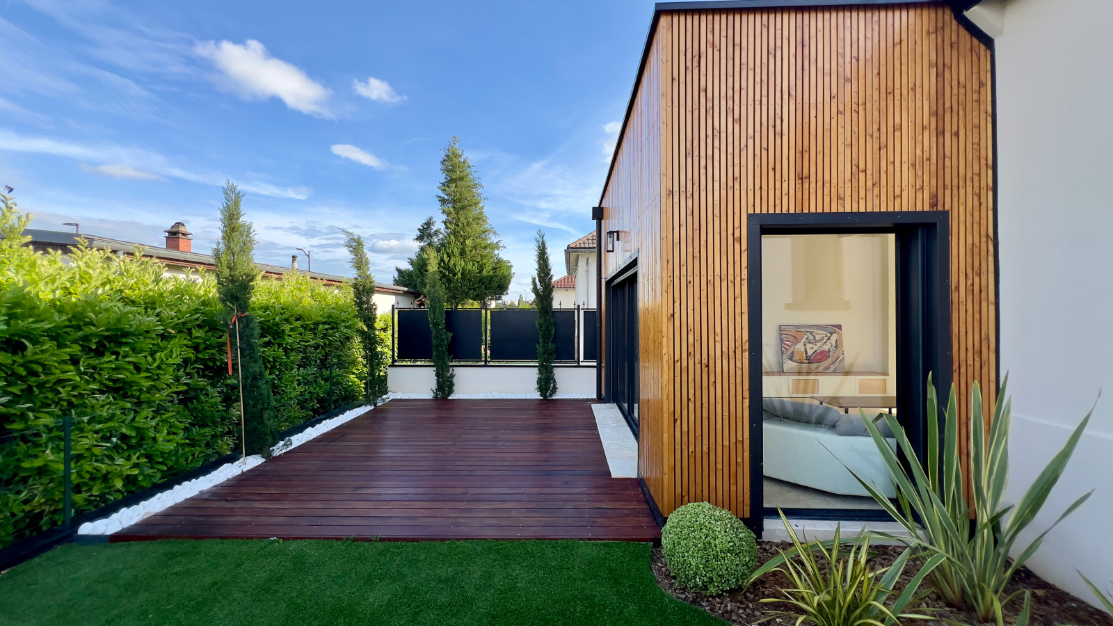 Côté extérieur, vous profiterez de deux terrasses bien exposées, idéales pour recevoir, ainsi que d’un car-port de 40 m², d’un portail automatique, et d’un jardin paysagé avec possibilité d’installer une piscine.