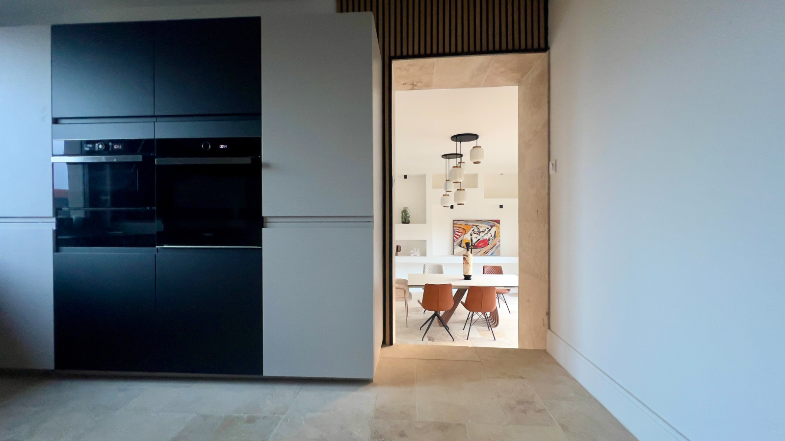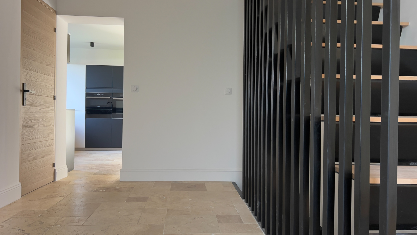 La grande cuisine équipée, fonctionnelle et contemporaine, s’ouvre idéalement sur les espaces de vie. Deux chambres bénéficient d’un dressing sur mesure.