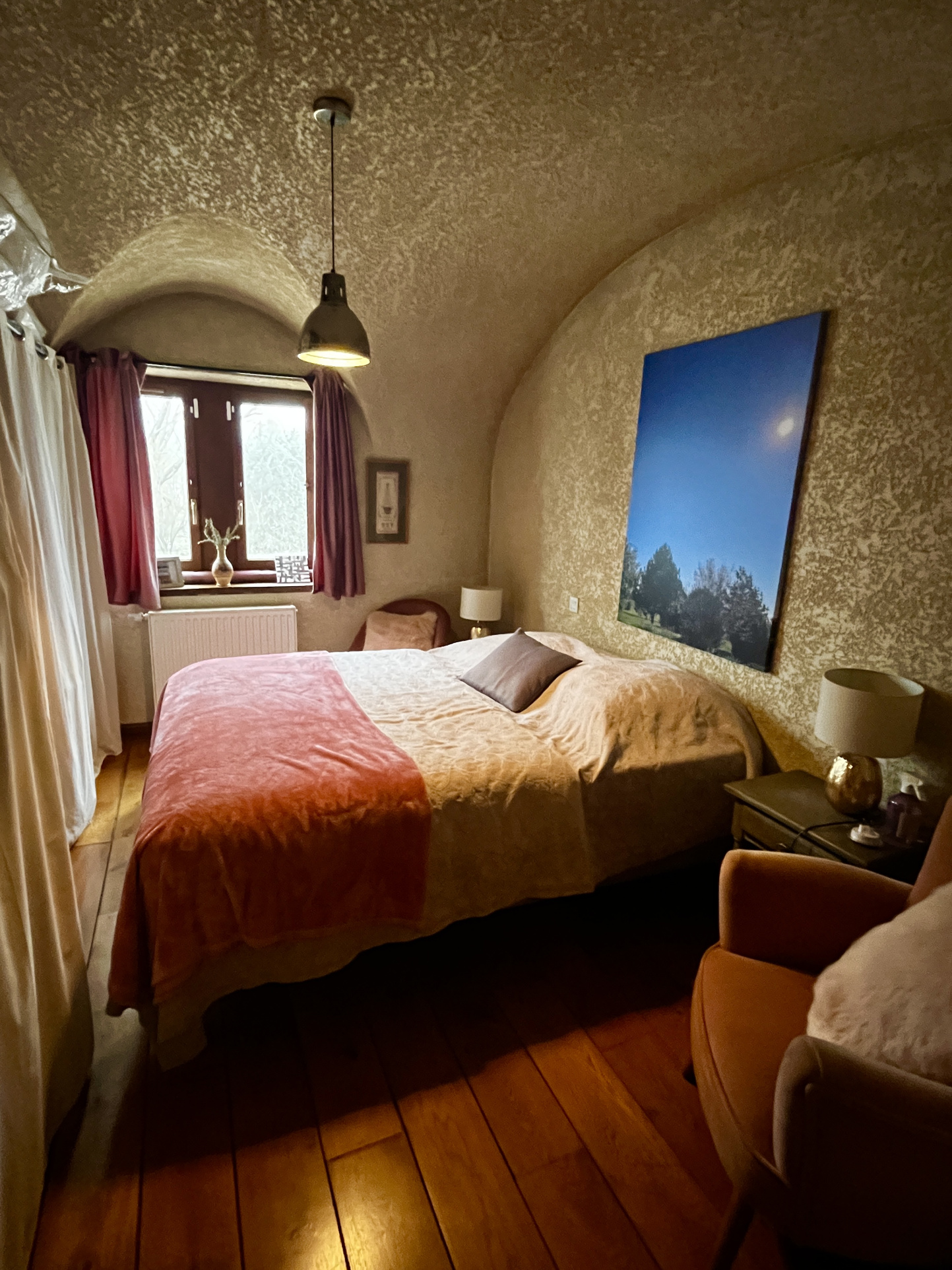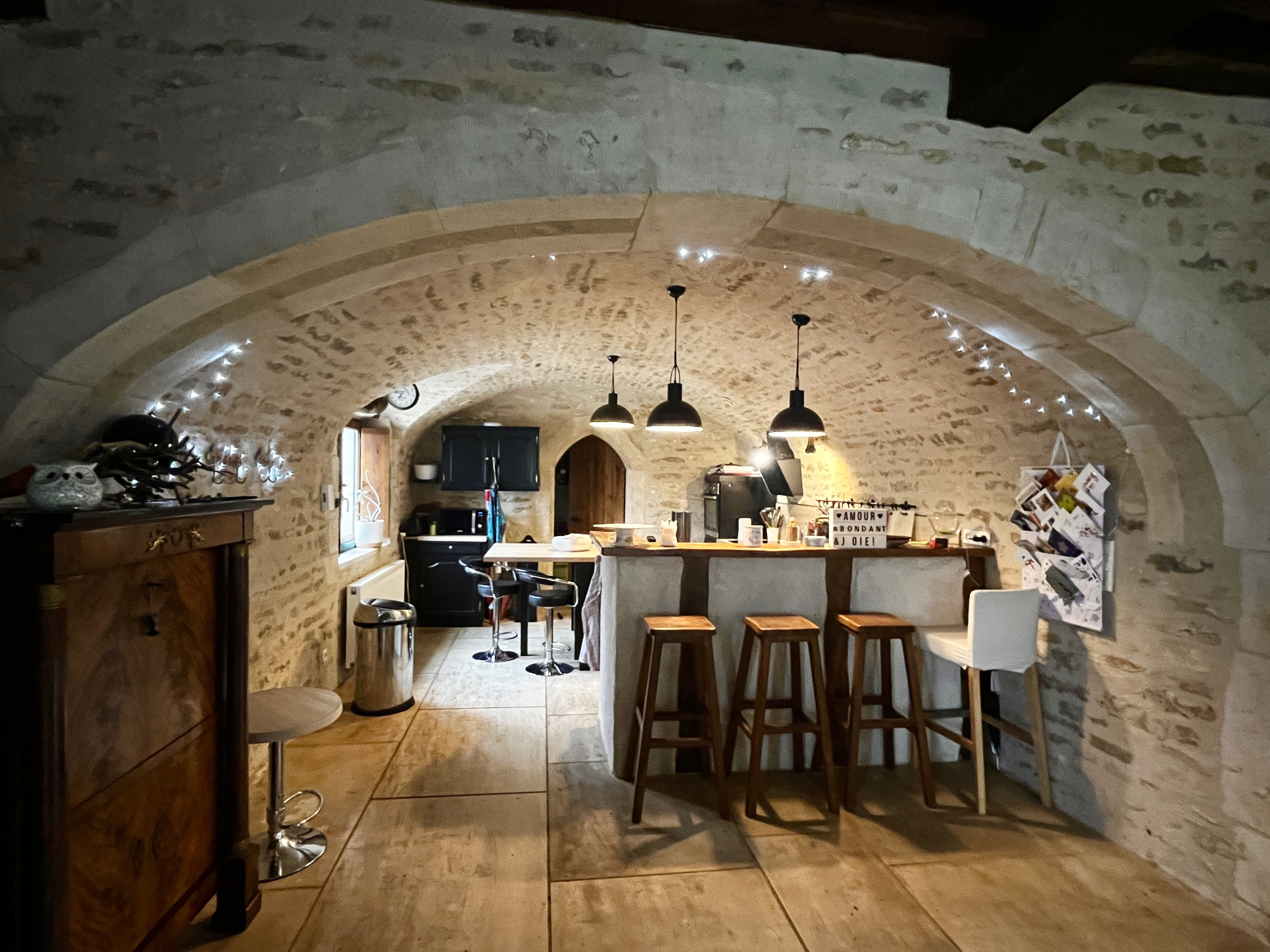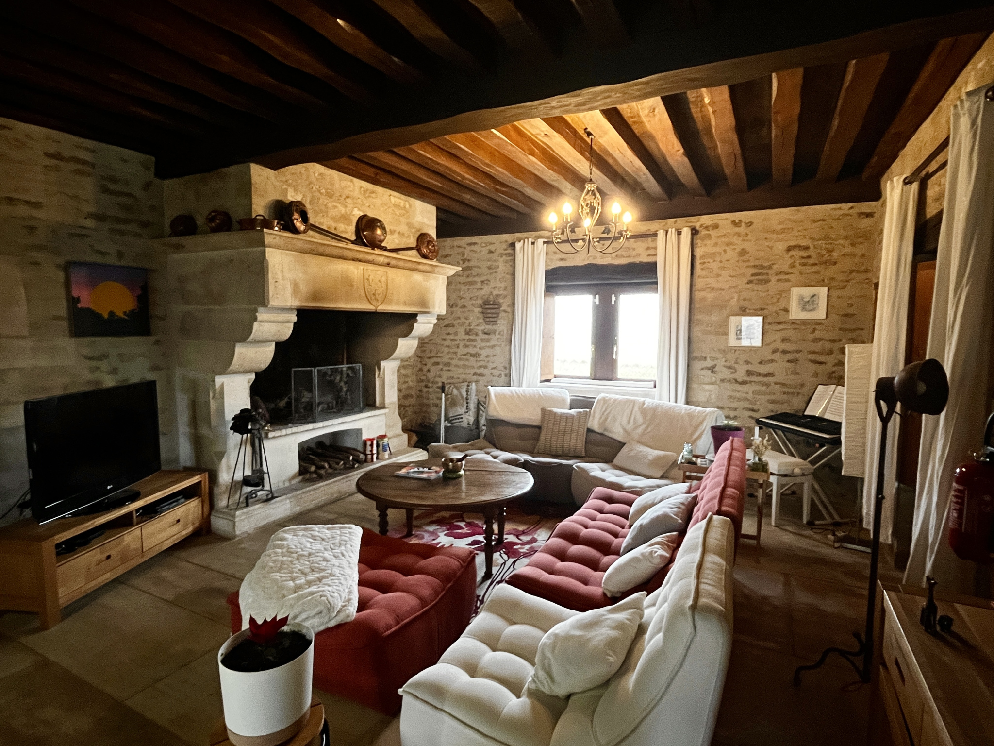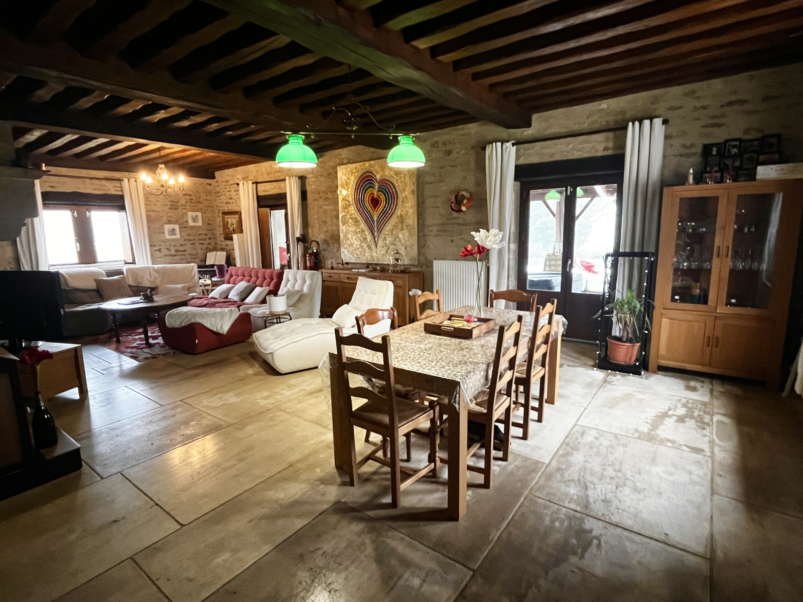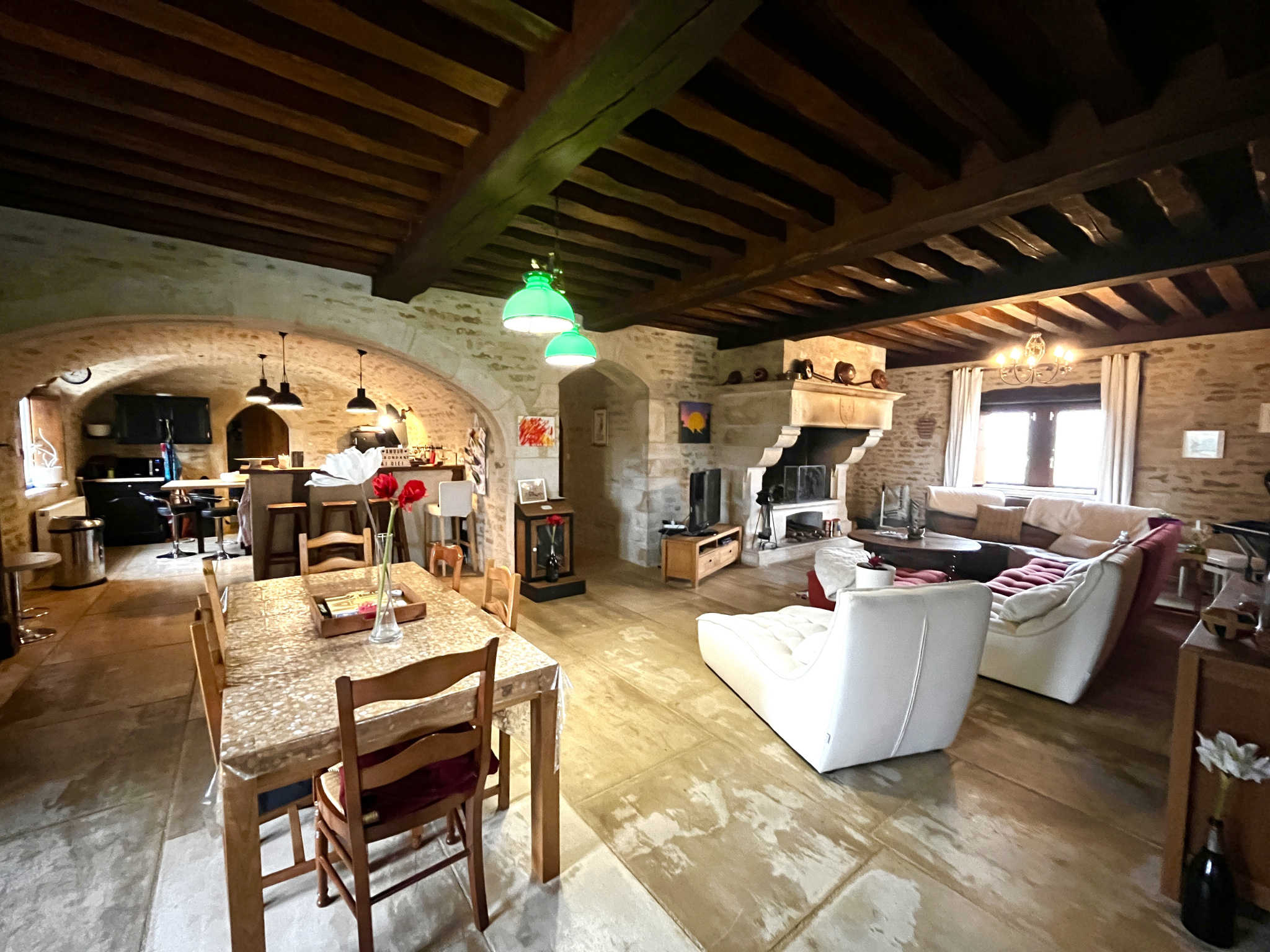 Cette demeure de caractère est dotée de beaucoup de cachet : pierres, dalles de Bourgogne, plafond à la française, voûtes, boiseries...