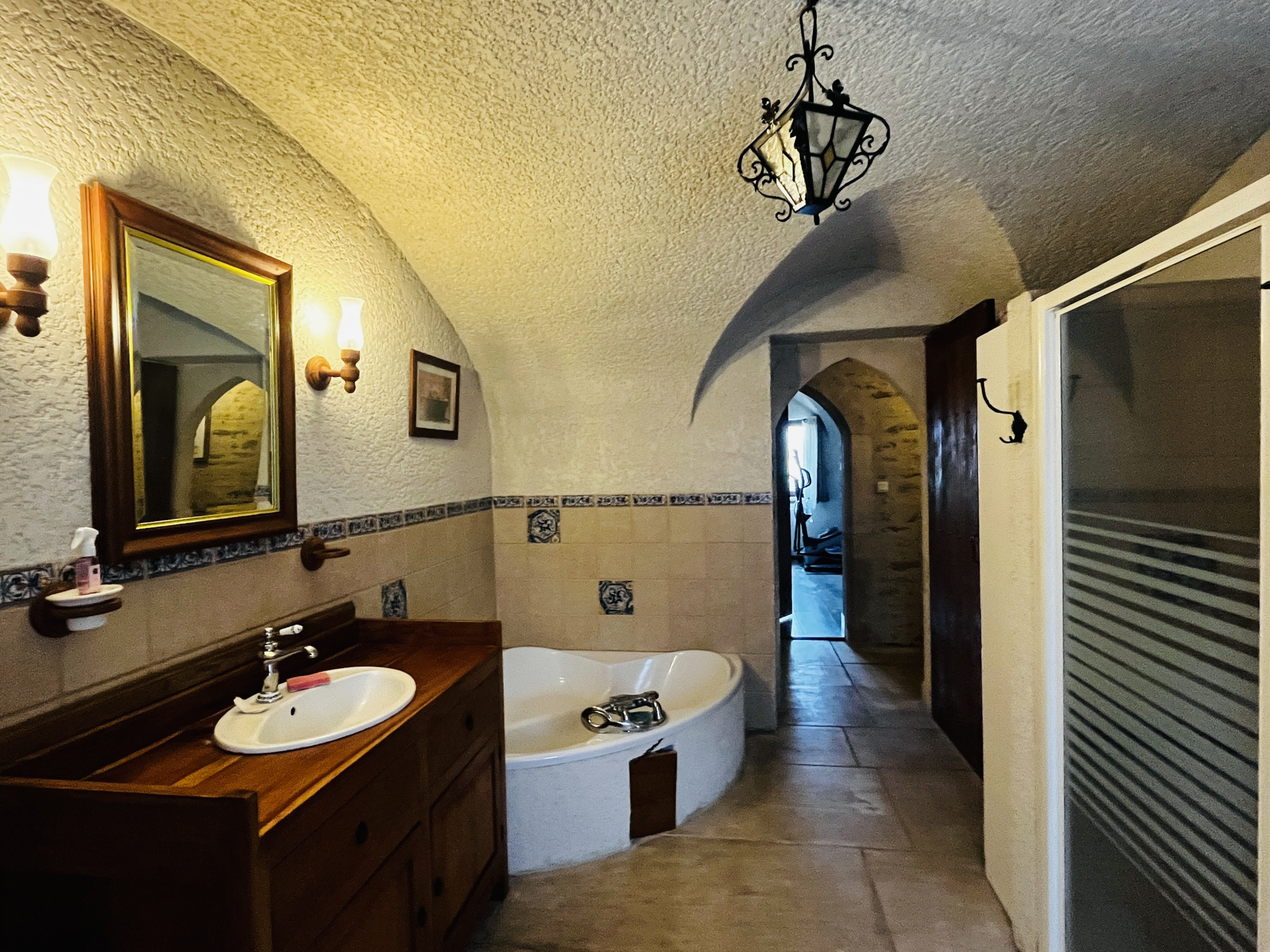 Un fantastique couloir vous mène au reste de la maison : quatre agréables chambres dont deux avec dressing, une grande salle de bains avec baignoire d'angle, douche et WC, et d'autres WC indépendants avec lave-mains.