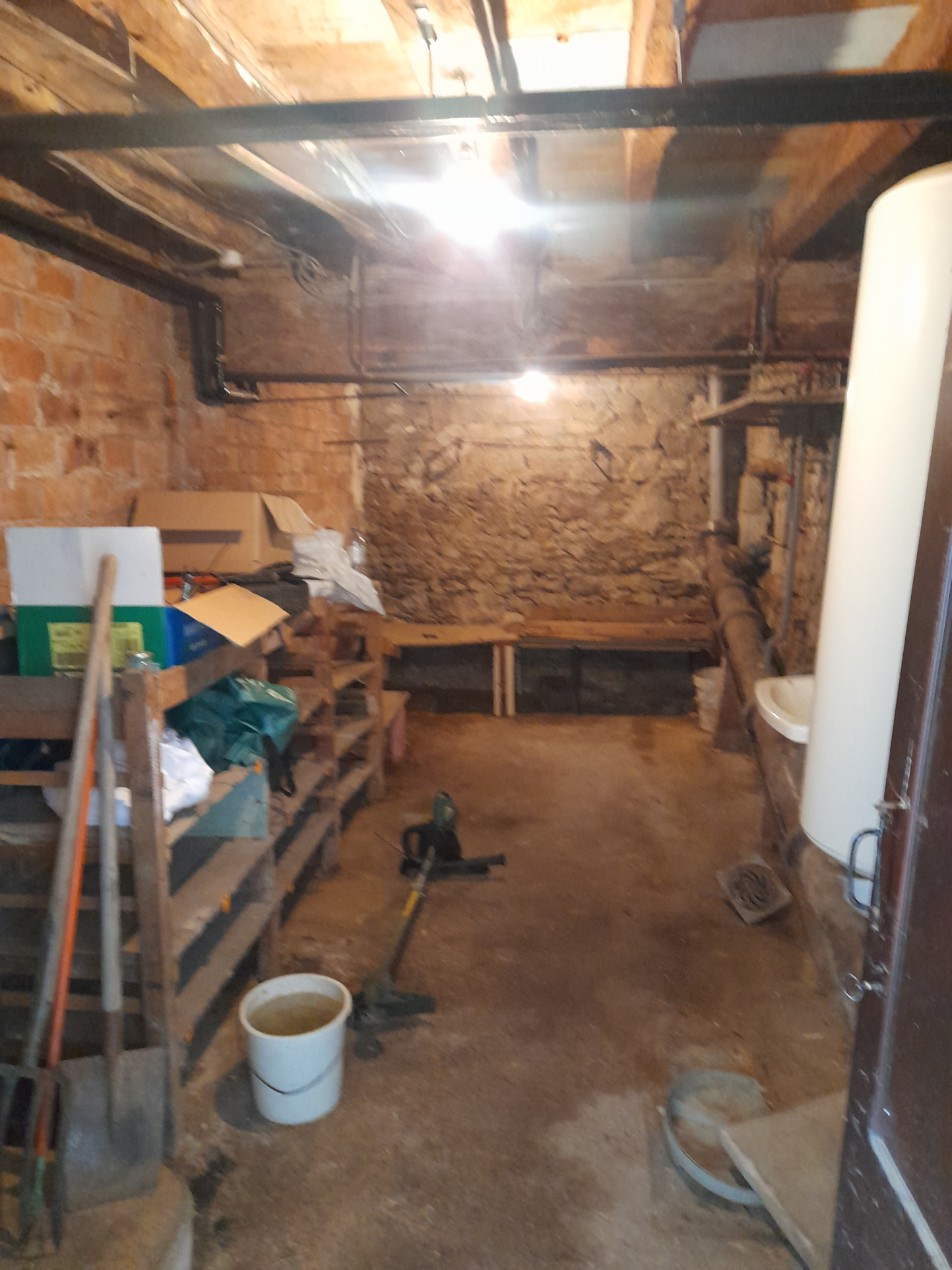 Cette maison se compose de 2 chambres,salle à manger,cuisine séparée,une salle d'eau et WC.Un grenier pouvant etre aménagé pour créer une troisième chambre.Un grand sous-sol composé de 2 caves et un atelier de bricolage.